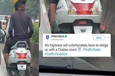 पुणे पोलिसांना टॅग करत एका व्यक्तीने स्कूटर चालकाचा फोटो पोस्ट केला. या स्कूटरवर जी नंबर प्लेट लागली होती, त्यावर एक छोटासा क्राऊन म्हणजेच मुकूट बनलेलं होतं. यानंतर पुणे पोलिसांनी त्यांच्या अधिकृत ट्विटर हँडलवरुन हा फोटो रिट्वीट केला आणि लिहिले, ‘दुर्दैवाने राजा साहेबांना लवकरच चालानने पुरस्कृत केलं जाईल’.