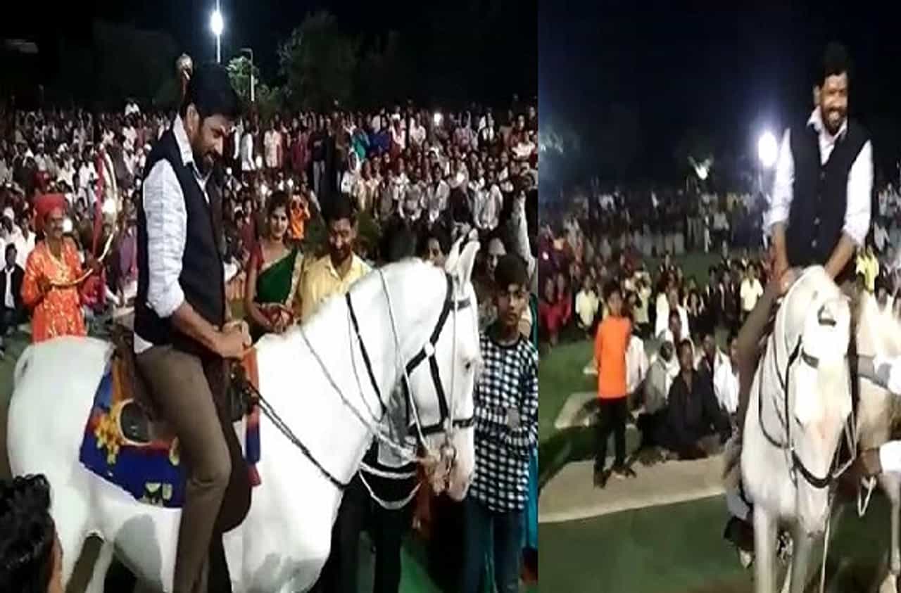 बच्चू कडू यांनी या घोड्यावर बसून रपेट मारली. या अनोख्या भेटीने बच्चू कडू चक्रावून गेले होते.