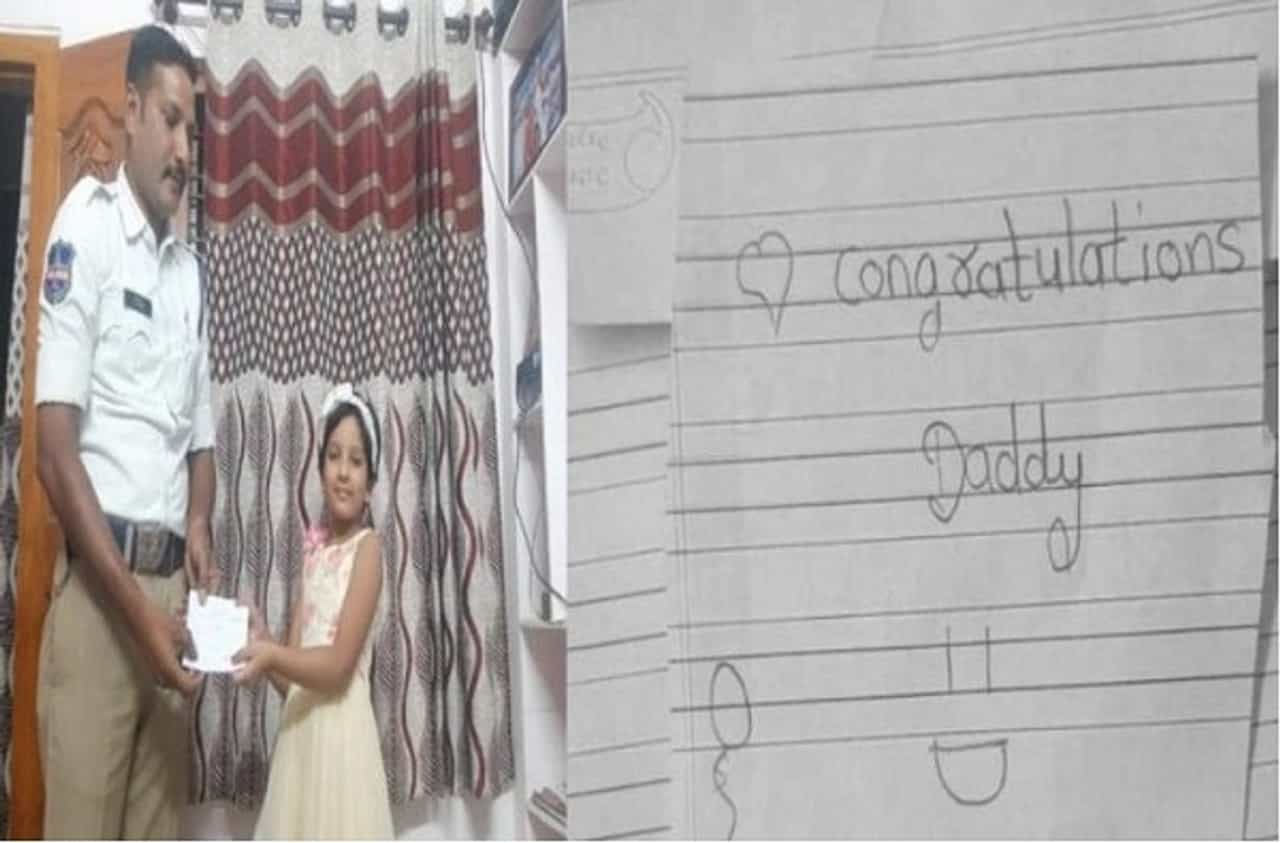 पोलीस कॉन्स्टेबल जी. बाबजी यांची सोशल मीडियावर जोरदार प्रशंसा सुरु आहे. त्याचबरोबर त्यांच्या परिवाराकडूनही त्यांना एक खास बक्षिस मिळालं. त्यांच्या 7 वर्षाच्या मुलीने आपल्या वडिलांना कर्तव्य बजावताना पाहिल्यानंतर स्वत:च्या हाताने एक कार्ड बनवून दिलं. हे कार्ड आपल्या वडिलांना देण्यासाठी ती रात्री उशिरापर्यंत जागी राहिली.