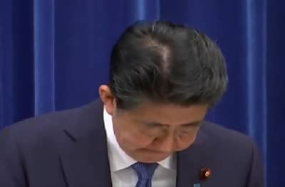 “कार्यकाळ संपण्यास एक वर्ष बाकी असताना राजीनामा दिल्याबद्दल जपानी नागरिकांची दिलगिरी व्यक्त करतो. विशेषतः कोरोना व्हायरसच्या संकटाच्या पार्श्वभूमीवर विविध धोरणे अद्याप लागू होण्याच्या प्रक्रियेत आहेत, अशा वेळी आपण पायउतार झालो” असं म्हणत त्यांनी पारंपरिक जपानी पद्धतीनुसार वाकून जनतेला नमन केले.