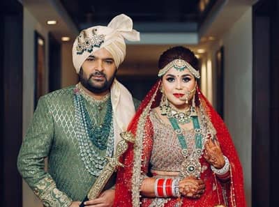 लग्नावेळी कपिल शर्मा हा हिरव्या रंगाच्या शेरवानीत दिसला, त्यासोबतच त्याने सुंदर अशी पगडी घातली होती, तसेच त्याच्या हातात तलवार होती. तर गिन्नीने लाल रंगाचा लेहंगा घातला होता. तिचे दागिने हे जरा हटके होते.
