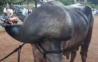 दुचाकी चालवता हेल्मेटसक्ती आहे, मात्र हेल्मेटचा वापर फारसा दिसत नाही, पण तुम्ही कधी हॅम्लेट घातलेला रेडा बघितला नसेल, मात्र या रेड्याचे डोकं बघा आणि काय ते तुमचं तुम्ही ठरवा. कोल्हापूरच्या गडहिंग्लज याठिकाणी अर्जुन समूहाकडून सूंदर म्हैस आणि सुंदर रेडा स्पर्धा भरवल्या. या स्पर्धेत सगळ्यांचे लक्ष वेधून घेतलं हेल्मेट भोला या रेड्याने. या रेड्याच्या डोक्याची ठेवण हेल्मेट सारखी आहे. जणू या रेड्याने हेल्मेट घातले आहे की काय असा भास होतो. जाफराबादी गीर जातीचा हा रेडा असून अवघ्या दोन वर्षांचा आहे. गडहिंग्लज मधील या जनावरांच्या स्पर्धेत हेल्मेट भोला याने सगळ्यांचे लक्ष वेधून घेतलं.
