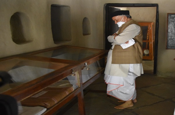 सेवाग्राम आश्रमात आल्यानंतर राज्यपाल भगतसिंग कोश्यारी यांनी आश्रमातील बा कुटी, बापू कुटी आणि येथील विविध उपक्रमांना भेट दिली. बापू कुटीमध्ये प्रार्थना केली, तसेच आश्रमातील खादी युनिटमधून 9 मीटर खादी खरेदी करत 1620 रुपये सुद्धा दिले. आश्रमाचे अध्यक्ष टी. आर. एन. प्रभू यांच्याशी चर्चा केली (Governor Bhagat Singh Koshyari Visit Sevagram Ashram).