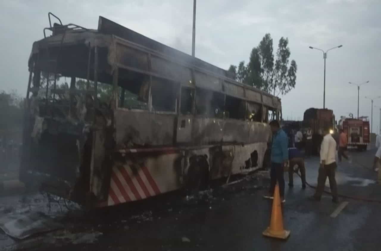 सोलापुरात भीषण दुर्घटना, बस जळून खाक, 13 प्रवासी जखमी