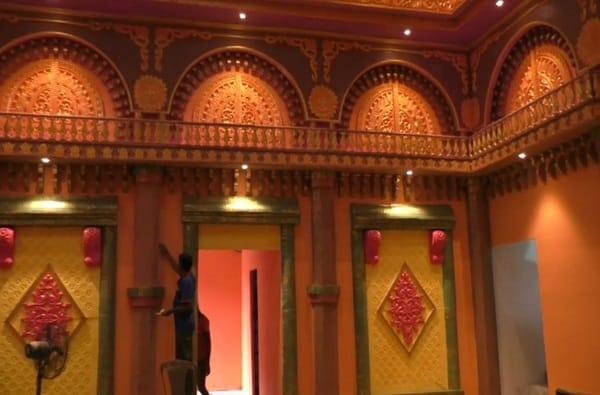 हे मंदीर उभारण्यासाठी तब्बल एक महिन्याहून अधिक काळ लागला. तसेच यासाठी कोलकाता आणि ओडिशावरुन आलेल्या दीडशे कामगारांनी मेहनत घेऊन हे मंदीर उभारलं आहे. विशेष म्हणजे हे मंदीर लाकडी बांबू, वासे, कपडा आणि रस्सीच्या सहाय्याने तयार केलं आहे.