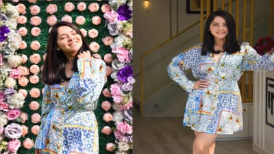 यात तिने निळ्या रंगाचा वन पीस घातलाय.