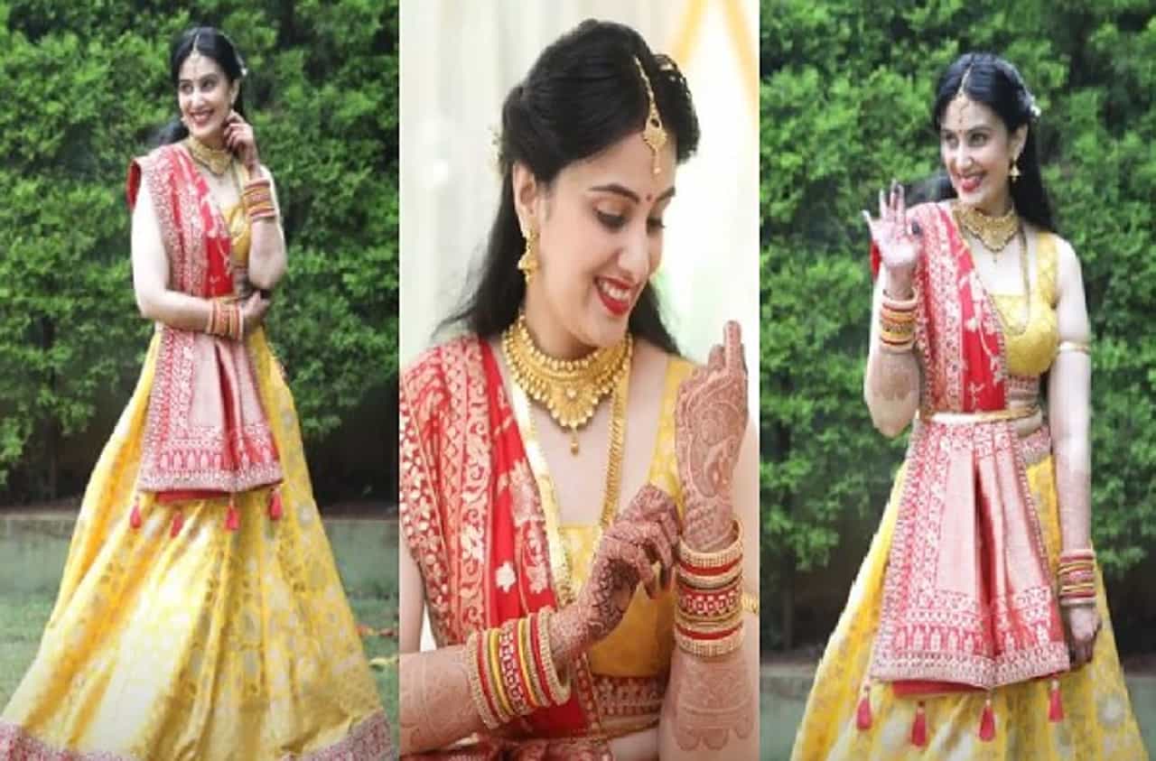 - तर, तीर्थदीपने तिला मॅच करण्यासाठी पिवळ्या रंगाची शेरवानी घातली आहे.