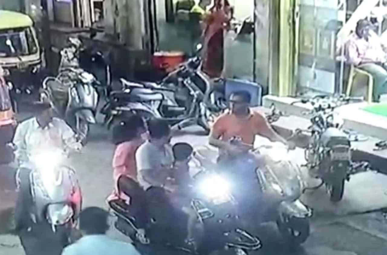 कोल्हापूर : कोरोना विषाणूने सध्या जगभरात धुमाकूळ घातला (Couple beaten man due to sneeze kolhapur) आहे. मोठ्या प्रमाणात कोरोनाच्या रुग्णांमध्ये वाढ होत असल्यामुळे सर्वांमध्ये भीतीचे वातावरण निर्माण झाले आहे. त्यामुळे सर्वांनी कोरोनाचा धसका घेतला आहे. याच दरम्यान कोल्हापुरात एकजण दुचाकीवरुन जाताना शिंकल्याने एका दाम्पत्याने दुचाकीस्वाराची धुलाई केली. हा संपूर्ण प्रकार सीसीटीव्हीत कैद (Couple beaten man due to sneeze kolhapur)झाला आहे.