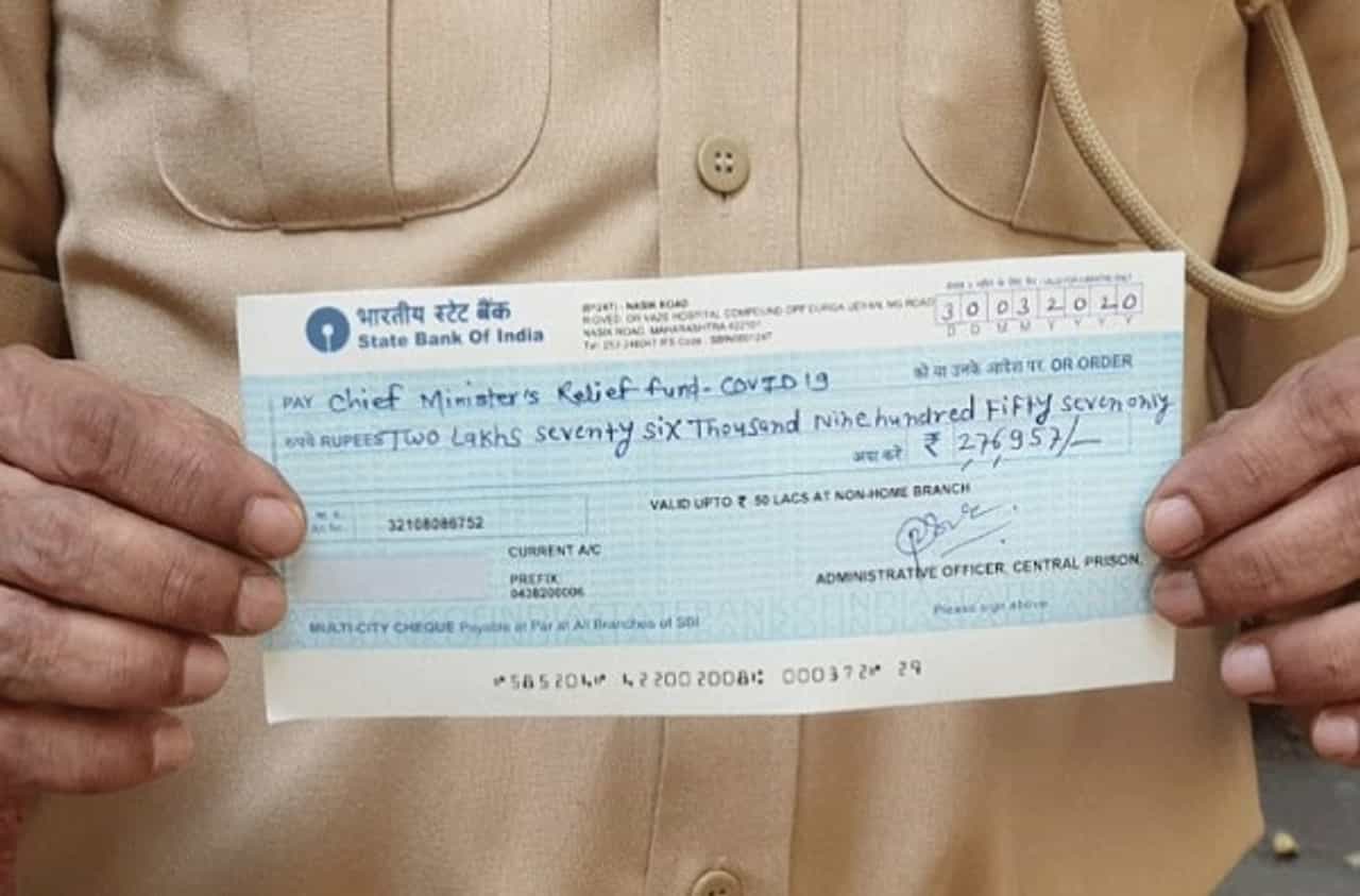 नाशिकचे मध्यवर्ती कारागृह अधीक्षक प्रमोद वाघ यांनी जिल्हाधिकारी सुरज मांढरे यांच्याकडे धनादेश सुपूर्द केला. कैद्यांनी आपल्या निधीतून दोन लाख 76 हजार 957 रुपये मुख्यमंत्री सहाय्यता निधीमध्ये जमा केले आहेत.