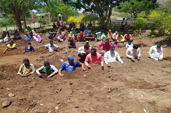 त्र्यंबकेश्वरमध्ये कंत्राटी कामगारांचं स्वत:ला कमरेपर्यंत गाडून घेत आंदोलन