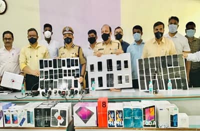 नवी मुंबई : खारघरमधील शिव इलेक्ट्रॉनिक्स या मोबाईल शोरुमचे (Navi Mumbai Mobile Shop Robbery) शटर गॅस कटरने कट करुन सुमारे 50 लाख रुपये किमतीच्या वस्तूंची चोरी करण्यात आली होती. या प्रकरणी नवी मुंबई गुन्हे शाखेने तीन आरोपींसह पोलिसांनी 45 लाख रुपयांचा चोरी केलेला ऐवज हस्तगत केला आहे. नवी मुंबई पोलीस आयुक्त बिपिन कुमार सिंह यांनी आयुक्तालयात पत्रकार परिषद घेऊन ही माहिती दिली (Navi Mumbai Mobile Shop Robbery).