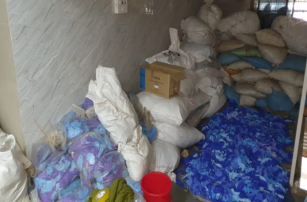 मिळालेल्या माहितीनुसार, पोलिसांनी केलेल्या कारवाईत डॉक्टरांनी वापरलेले, न धुतलेले व धुतलेले तीन ते चार क्विंटलच्या अशा एकूण 263 गोण्या सापडल्या. या गोण्यांमध्ये डॉक्टरांनी वापरलेले निळ्या रंगाचे अंदाजे 4 लाख नग हातमोजे एका पाकिटात भरुन ठेवण्यात आल्याचे दिसून आले. तसेच, हातमोजे धुण्यासाठी दोन वॉशिंग मशिन, धुतलेले हातमोजे सुकवण्यासाठी ब्लोअर मशिन, पॅकिंगचे साहित्य असा एकूण 6 लाख 10 हजार 720 रूपयांचा मुद्देमाल जप्त केला आहे.
