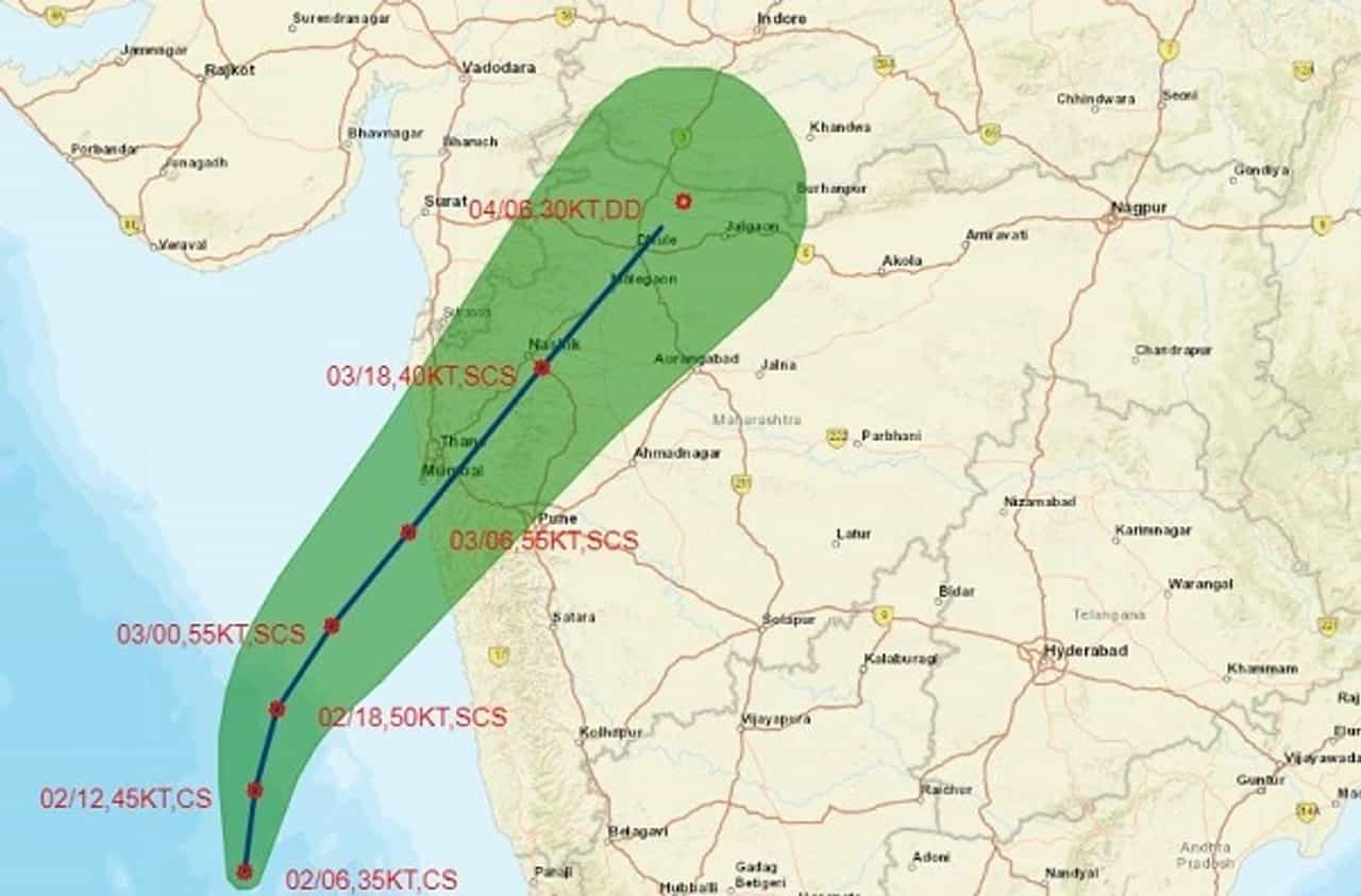 Deep Depression to intensify into Cyclonic Storm during next 6 hours. To cross north Maharashtra and adjoining south Gujarat coast between Harihareshwar and Daman, close to Alibag (Raigad District, Maharashtra) during the afternoon of 03rd June. https://t.co/rXRAo26pyF pic.twitter.com/lOJUD8FMFP