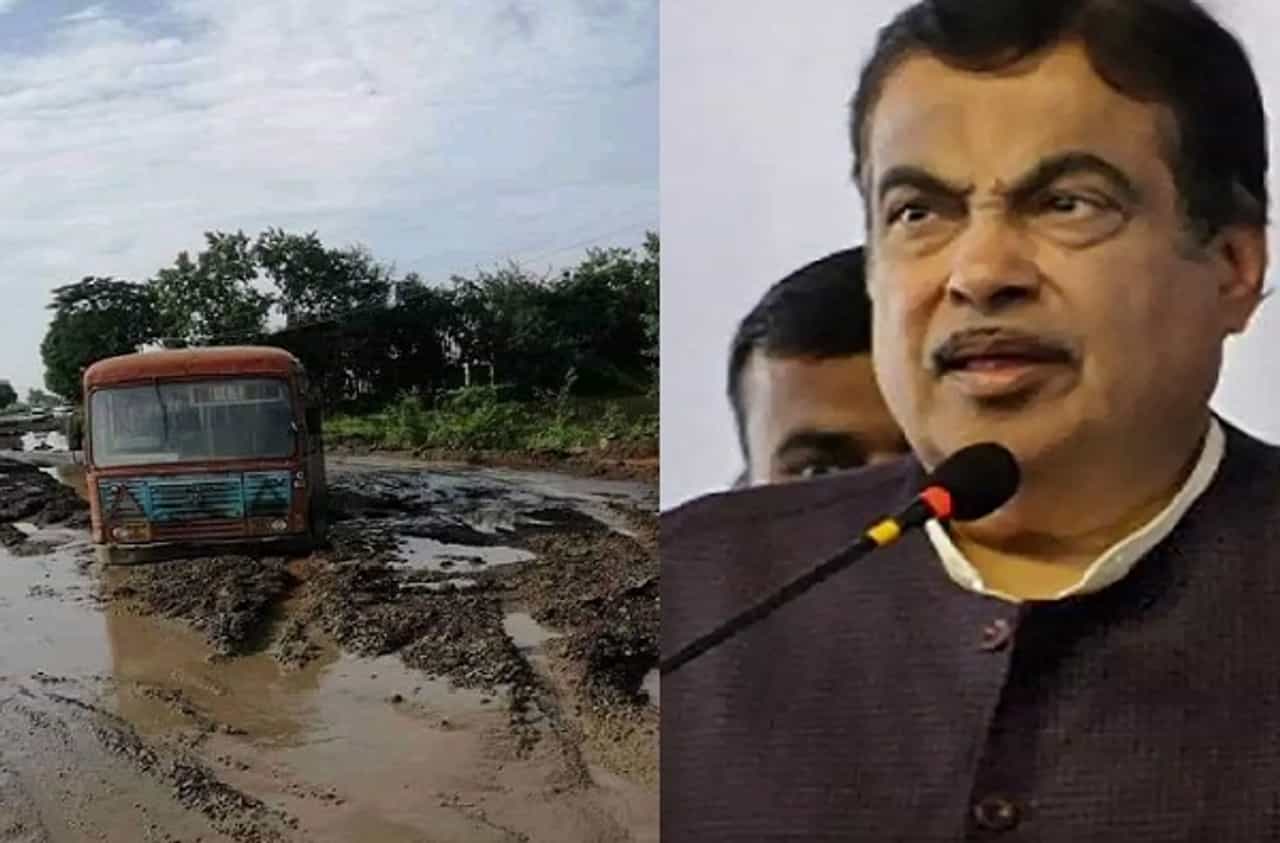 चिखलात रुतलेल्या एसटीचा फोटो पाहून गडकरींनी कंत्राटदारांना झापलं