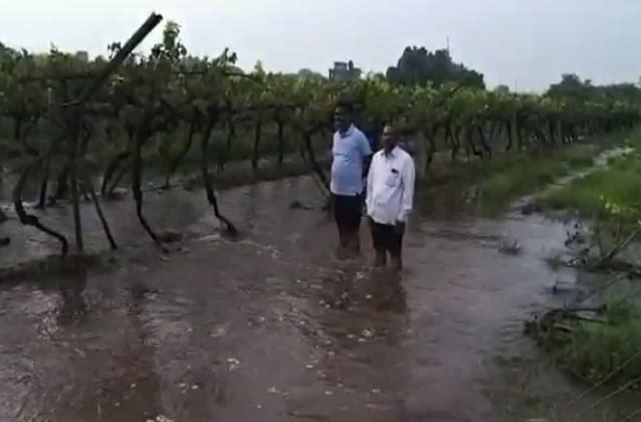 (pomegranate and grapes damaged due to rain in pandharpur)