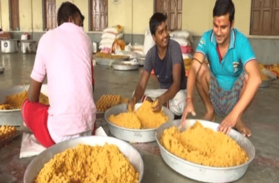 “हे तयार करण्यात येणारे लाडू जगभरात, मठ-मंदिरात पाठवले जाणार आहे. या लाडूंचे नैवेद्य दाखवले जाईल. नैवेद्य दाखवल्यानंतर हे लाडू सर्व मठ-मंदिरात पाठवले जातील. तसेच येथील भक्तांमध्येही लाडू वाटले जाईल”, असंही सेवकाने सांगितले.
