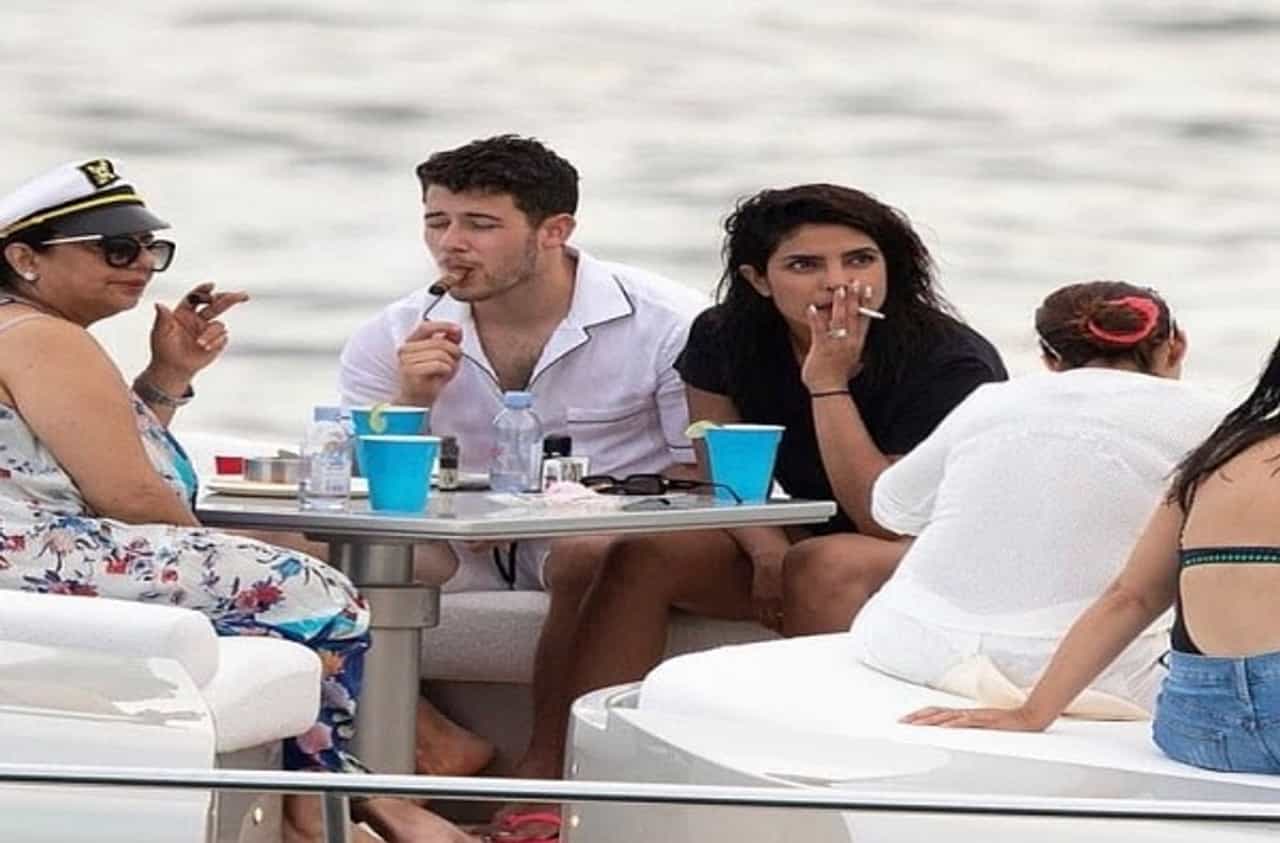 लग्नानंतर प्रियांकाचा निकसोबतचा हा पहिला वाढदिवस होता. यानिमित्ताने निकने प्रियांकासाठी मियामी बीचवर एका विशेष पार्टीचे आयोजन केले होते. यात प्रियांका, नवरा निक जोन्स, आई मधु चोप्रा हे सहभागी झाले होते. या पार्टीतील काही फोटो नुकतंच व्हायरल झालेत. त्यात प्रियांका तिच्या आई आणि नवऱ्यासोबत सिगारेटचे ओढताना दिसत आहे. या फोटोमुळे ती चांगलीच चर्चेत आली आहे.