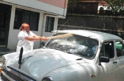 (Pune MNS Corporator Vasant More vandalizes car of Pune Municipal Corporation Official)