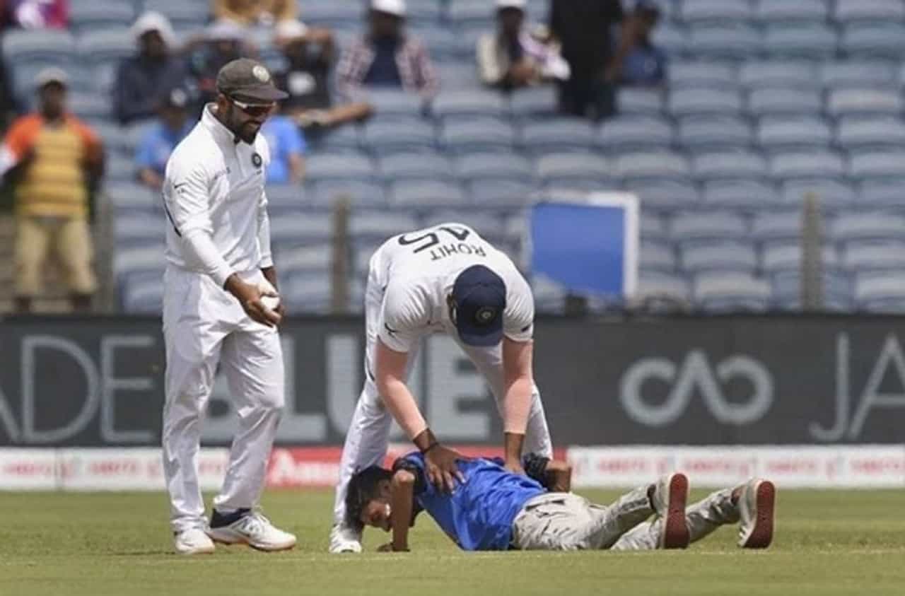 रोहितचे पाय पकडण्यासाठी चाहता मैदानात घुसला, पुण्याच्या मैदानातील थरार