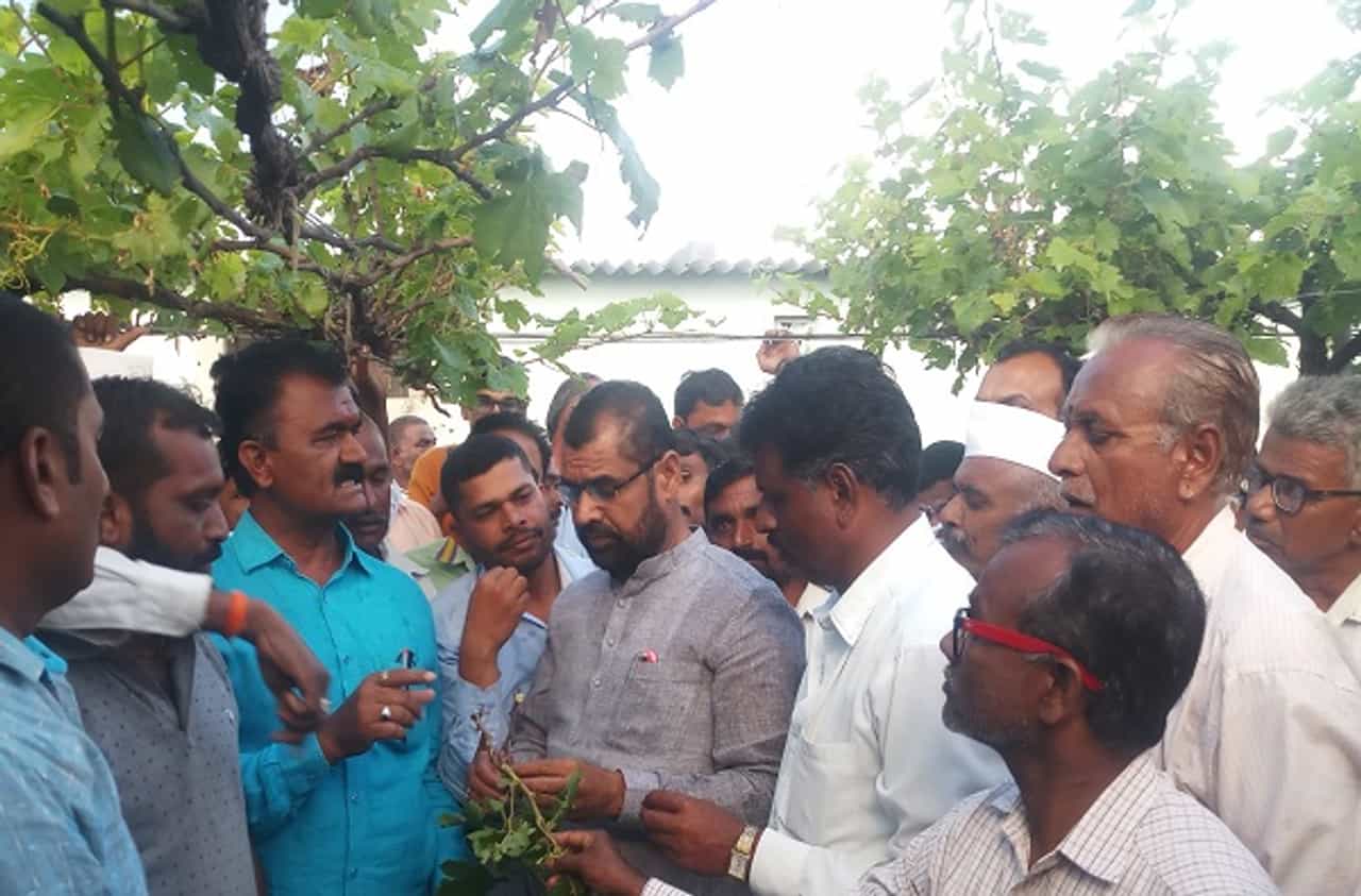 परतीच्या पावसाने निफाड तालुक्याला सोमवारी अक्षरशः झोडपून काढले आहे. यात द्राक्षबागा, कांदा, भुईमूग, बाजरी, मका, सोयाबीन या प्रमुख पिकांचे मोठ्या प्रमाणात नुकसान झाले. या नुकसानीची पाहणी करण्यासाठी सदाभाऊ खोत शुक्रवारी (2 नोव्हेंबर) नाशिक जिल्हा दौऱ्यावर आले होते. यावेळी निफाड तालुक्यातील कोळवाडी येथील कोंडाजी पुंजा शिंदे या शेतकऱ्याच्या द्राक्ष बागेत जाऊन त्यांनी नुकसानीची पाहणी केली.