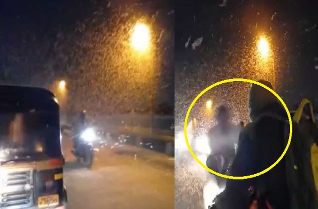 दुचाकी आणि मोटारीच्या उजेडात किड्यांचा पाऊसच पडत असल्याचे दिसते. या किड्यांपासून बचाव करण्याच्या नादात वाहनचालकांचे अपघात घडत आहेत. वाहन चालकांना काचा बंद करुन प्रवास करण्याशिवाय पर्याय नाही. अशा परिस्थितीत दुचाकीस्वारांची मात्र तारेवरची कसरत होत आहे. बाईकस्वारांना हे किडे चुकवत मार्ग काढताना अनेकदा अपघातांना सामोरं जावं लागत आहे.