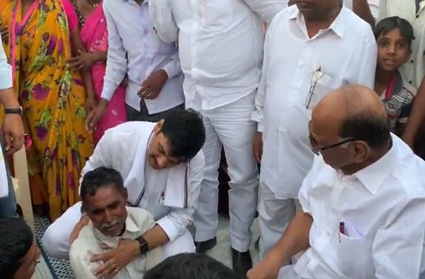 आष्टी तालुक्यातील इमनगाव येथील शरद साबळे या कांदा उत्पादक शेतकऱ्याने कर्जबाजारीपणामुळे आत्महत्या केल्याची माहिती पवारांना मिळाली. यानंतर तातडीने शरद पवारांचा ताफा आत्महत्याग्रस्त शेतकऱ्याच्या घरी पोहोचला.