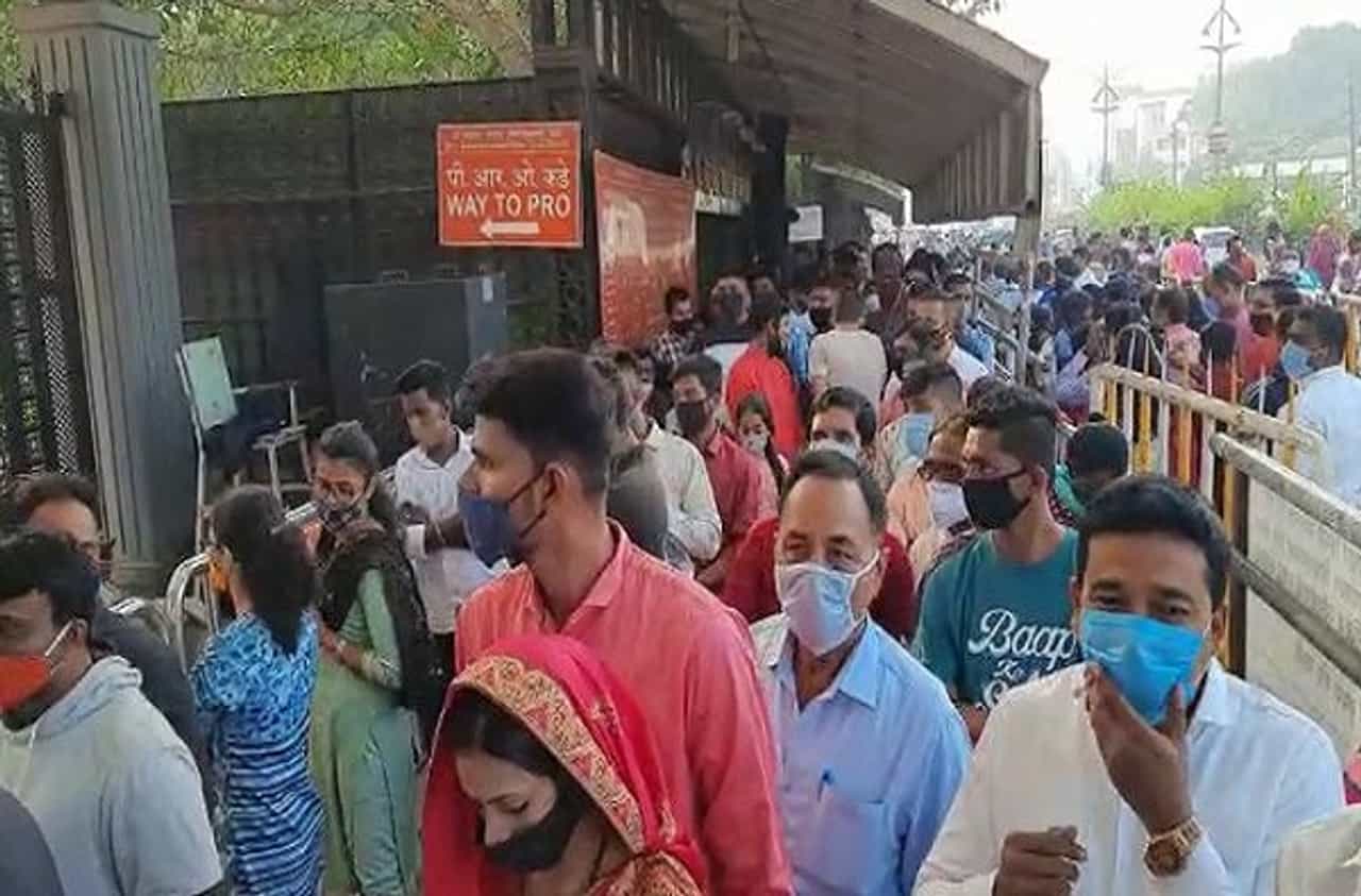 - विशेष म्हणजे मंदिर परिसरात सोशल डिस्टन्सिंगचाही फज्जा उडाल्याचे पाहायला मिळत आहे.
