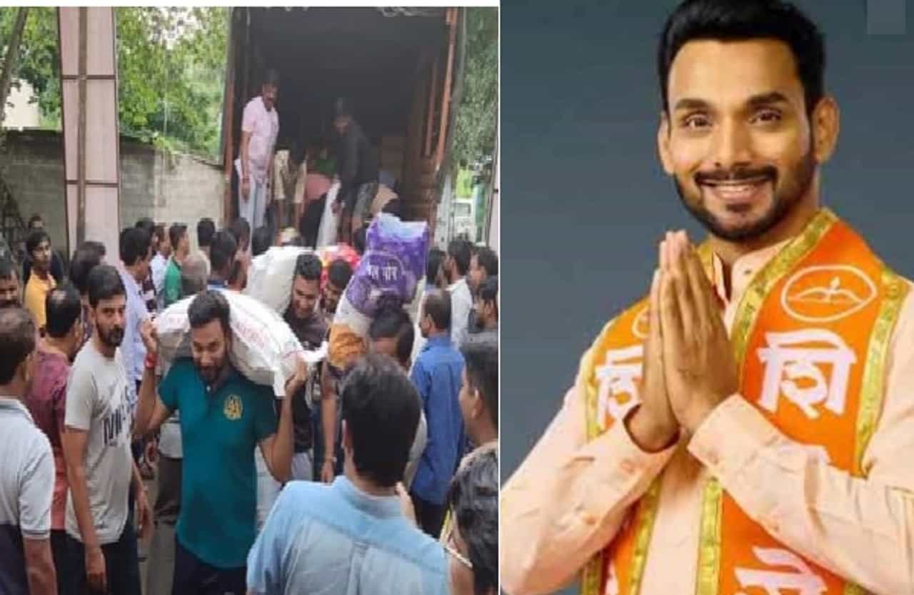 पूरग्रस्तांचं ओझं खांद्यावर, खासदार धैर्यशील मानेंनी ट्रकमधील पोती स्वतः उतरवली