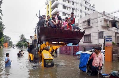 मुसळधार पावसामुळे बिहारमधील जनजीवन विस्कळीत झाले आहे. सर्वत्र पाणि साचल्यामुळे रस्त्यांनाही नद्यांचे स्वरुप आलं आहे. यामुळे अनेकजण पाण्यात अडकले आहेत. यासाठी एनडीआरएफच्या दोन बोट राजेंद्र नगरमधील अडकलेल्या लोकांना बाहेर काढण्याचे काम करत आहे.