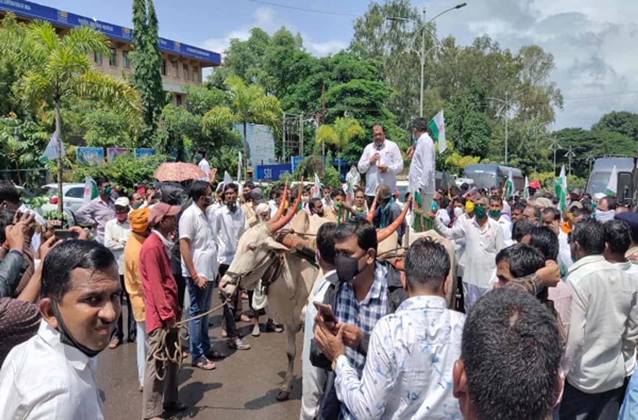 दुग्धजन्य पदार्थावरील GST कमी करा, प्रतिलिटर 5 रुपये अनुदान द्या, स्वाभिमानीचा जिल्हाधिकारी कार्यालयावर मोर्चा