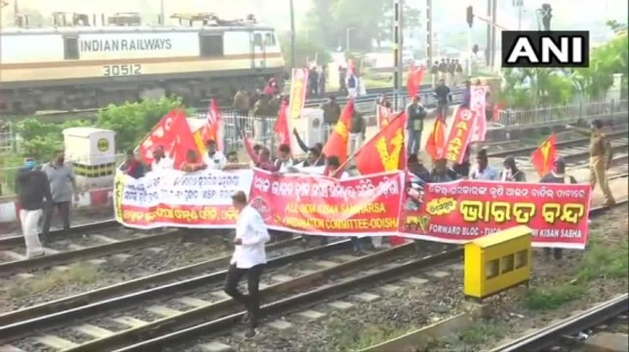 ओडिशातील भुवनेश्वर रेल्वे स्थानकांवरही रेल्वे अडवून धरल्या जात आहेत. डावे, कामगार संघटना आणि शेतकरी संघटनांनी इथं रेल्वे रुळावर उतरत रेल्वे गाड्या अडवून धरल्याचं चित्र पाहायला मिळालं.