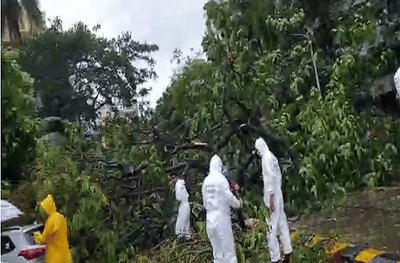निसर्ग चक्रीवादळानंतर एक दिवस विश्रांती घेतलेल्या पावसाने पुन्हा एकदा मुंबईत दमदार हजेरी (Tree Fallen on Road) लावली. मुंबई शहरासह उपनगरात मध्यरात्रीपासून मुसळधार पाऊस कोसळत आहे.