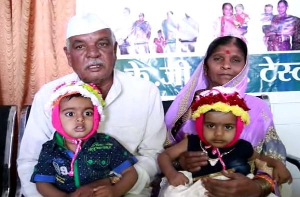 बीड जिल्ह्यातील सुकळी गावचं हे वृद्ध दाम्पत्य आहे. चाळीस वर्षापासून आपल्याला मुलं व्हावं यासाठी प्रयत्न करत होते. अनेक डॉक्टरांचा सल्ला घेतल्या नंतरही पदरी निराशाच येत होती. कधी शुगर, कधी ब्लड प्रेशर तर कधी वय आडवे यायचे. अखेर त्यांनी लातूरच्या डॉ. अमीर शेख आणि डॉ. रजिया शेख यांचा सल्ला घेतला आणि टेस्टट्यूब बेबीचा पर्याय निवडला. टेस्टट्यूब बेबीच्या माध्यमातून वयाच्या 65 व्या वर्षी धनराज गायकवाड यांना जुळी मुलं झाली. त्यांच्या पत्नीचं वय त्यावेळी 60 होते. एवढ्या उतार वयात मुलं होणारे हे देशातलं पहिलं दाम्पत्य असल्याचा दावा त्यांच्यावर उपचार करणाऱ्या डॉकटरांनी केला आहे. त्यामुळे वृद्धपकाळात आई-वडील झाल्याचा आनंद आता त्यांना शब्दात सांगता येत नाही. त्यांना आभाळही ठेंगणे झालं आहे.