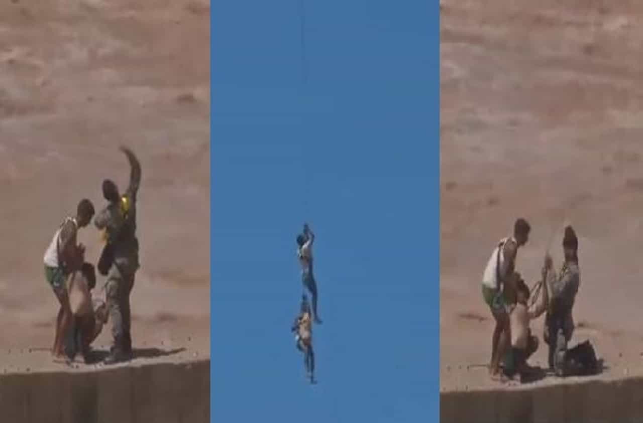 जम्मूच्या तावी नदीतील पाण्याची पातळी अचानक वाढल्याने एका सिमेंटच्या बंधाऱ्यावर चार जण अडकले होते. या चौघांना वाचवण्यासाठी वायुदलाने रेस्क्यू ऑपरेशन सुरु केले. यातील दोन जणांना बाहेर काढण्यासाठी बचावकार्यासाठी लावलेली वायुदलाची दोरी तुटली. त्यांना पोहता येत असल्याने ते दोघेजण पोहत नदीच्या किनाऱ्यावर पोहोचले.