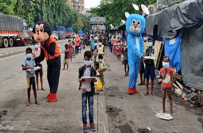 यावेळी रस्त्याच्या शेजारी असलेल्या झोपडपट्ट्यांमधील मुलांसाठी मिकि माऊस, पोलार बिअर, हत्ती आणि डोरेमॉनचा वेश घालून बच्चे कंपनीचं मनोरंजन करण्यात आले.