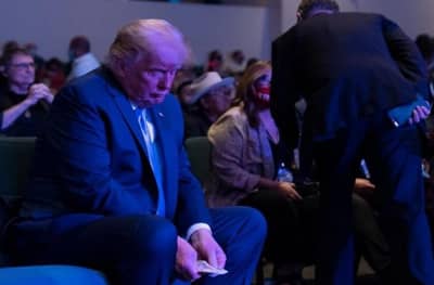 आपल्या शेवटच्या प्रेसिडेंशिअल डिबेटआधी 19 ऑक्टोबरला ट्रम्प लॉस वेगासच्या आंतरराष्ट्रीय चर्चमध्ये गेले होते. मात्र, या दौऱ्यात त्यांचा एक फोटो चांगलाच चर्चेचा विषय बनला. ट्रम्प अगदीच मोजक्यावेळी चर्चमध्ये जाताना दिसले आहेत. हा एक इनडोअर कार्यक्रम होता. यात ट्रम्प विना मास्क आले. त्यानंतर त्यांचा चर्चमधील हा दुर्मिळ फोटो सोशल मीडियावर चांगलाच चर्चेचा विषय ठरला. हा फोटो चर्चमध्ये दान करण्याआधी बिलं मोजतानाचा आहे.