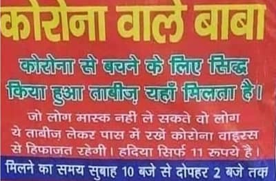 या बाबाने आपल्या दुकानाबाहेर एक बोर्ड लावला होता. ज्यामध्ये या भयानक व्हायरसला ठिक करण्याचा दावा या बाबाने केला होता. “जे लोक मास्क लावू शकत नाही. ते लोक लॉकेट घालून कोरोनापासून लांब राहू शकतात”, असं त्या बोर्डवर लिहिले होते.
