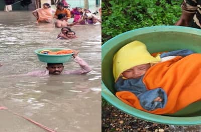शहरात पाणी साठल्याने पोलिसांकडून युद्धपातळीवर बचावकार्य सुरु आहे. या बचावकार्यादरम्यान पोलिसांनी एका लहान बाळाला टबमध्ये टाकून त्याला त्यातून सुरक्षितरित्या वाचवले