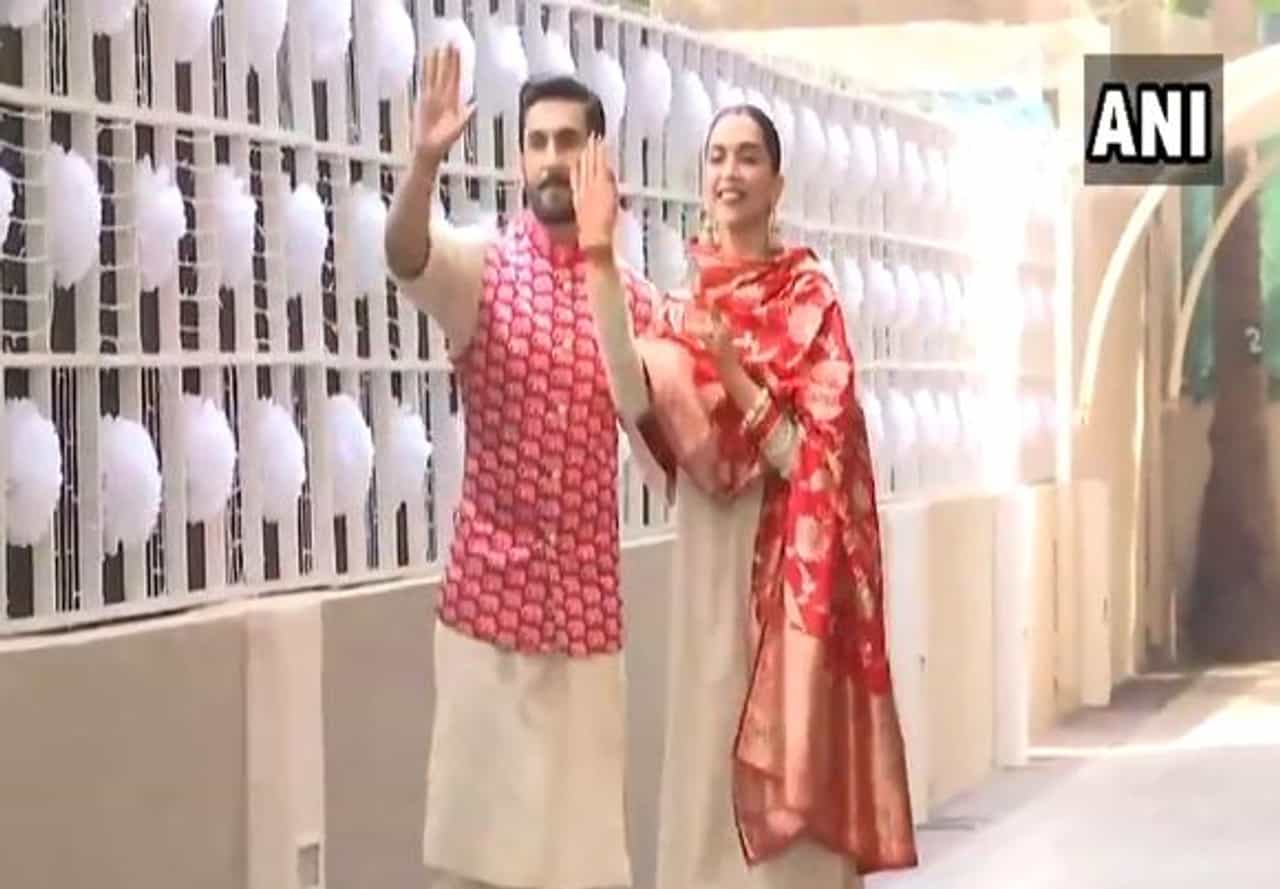 WATCH: Ranveer Singh and Deepika Padukone at Ranveer Singh’s residence in Mumbai. They got married earlier this week in Italy’s Lombardy pic.twitter.com/kgaiq87WTO
