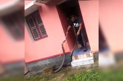 संबंधित व्हिडीओत एक सर्पमित्र घरात आढळलेल्या किंग कोब्राला घरातून बाहेर ओढत आहे. मात्र, तो कोब्रा इतका मोठा आहे की त्याला ओढणे देखील मुश्किल होताना दिसून येते. दरम्यान, हा कोब्रा सर्पमित्राच्या हातातून सुटका करुन घेण्यासाठी अनेकदा आपला भव्य फणा उभारुन हल्ला करण्याचा प्रयत्न करतो. एका प्रयत्नात तर कोब्रा सर्पमित्राच्या अत्यंत जवळ पोहचतो. त्यावेळी या सर्पमित्राला या कोब्राला अक्षरश: हातातून सोडून द्यावे लागते. त्यानंतर पुन्हा तो या कोब्राला पकडून एका कापडी बॅगमध्ये बंद करतो.