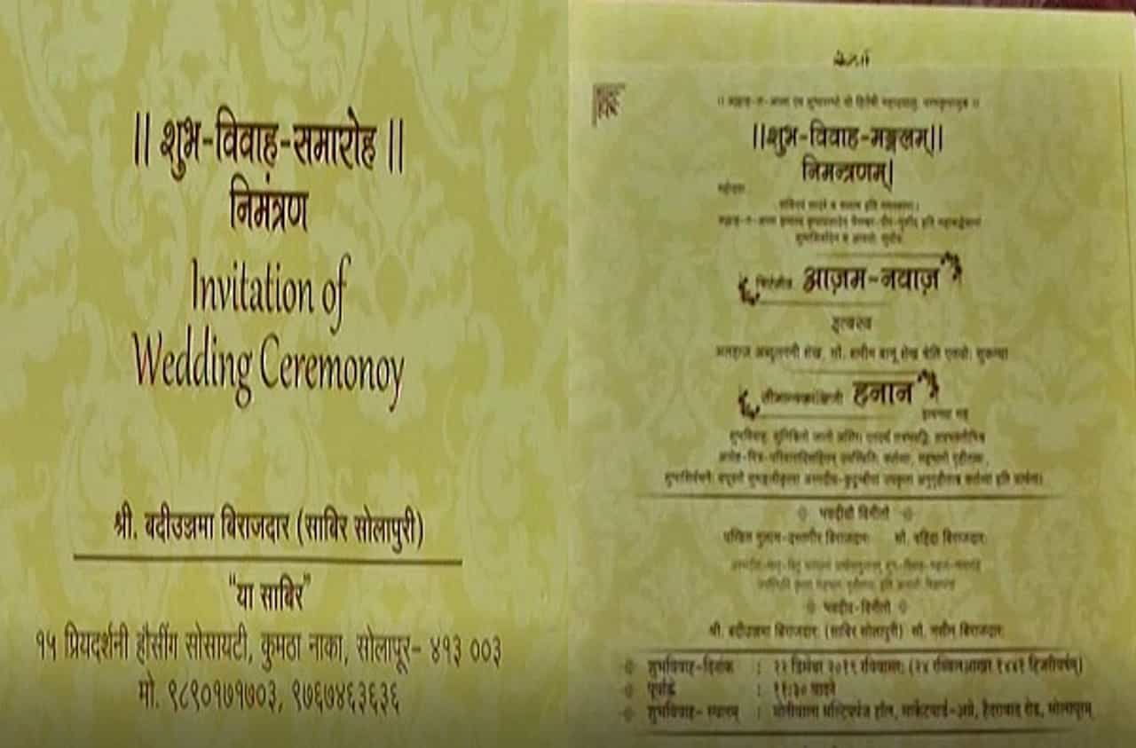 सोलापुरातील कुमठा नाका परिसरातील बिराजदार या मुस्लिम कुटुंबातील आझम नवाज यांचं लग्न ठरलं. मात्र, या लग्नाची निमंत्रण पत्रिका जरा हटके आहे (Muslim Wedding invitation in Sanskrit). संस्कृत भाषा आणि साहित्याचा प्रसार करणाऱ्या सोलापुरातील मुस्लिम कुटुंबाने संस्कृत भाषेच्या प्रेमापोटी संस्कृत भाषेत लग्नाची निमंत्रण पत्रिका छापली आहे.