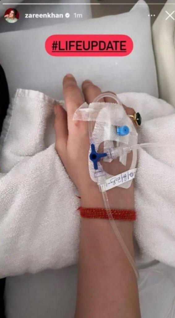 हॉस्पिटलमध्ये दाखल झाल्यानंतर झरीनने सोशल मीडियाच्या माध्यमातून आपल्या आजाराची माहिती तर दिलीच, शिवाय चाहत्यांना डेंग्यूपासून बचाव करण्याचा सल्लाही दिला. वास्तविक, झरीनने इंस्टाग्रामवर एक स्टोरी पोस्ट केली, ज्यामध्ये तिच्या हातात ड्रिप लावलेले दिसत होते. मात्र थोड्या वेळाने तिने स्टोरी डिलीट केली आणि दुसरी पोस्ट टाकली, त्यामध्ये तिच्या हातात ज्यूसचा ग्लास दिसत आहे. “रिकव्हरी मोड” असेही तिने कॅप्शनमध्ये लिहिले.