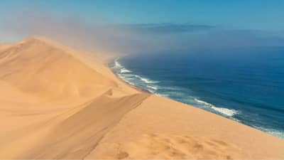 खरंतर नामिबिया हे एक किनारी वाळवंट आहे, जे आफ्रिकेच्या अटलांटिक महासागराला मिळते, म्हणून येथे तुम्हाला वाळू आणि निळ्या पाण्याच्या संगमाचे एक अद्भुत दृश्य पहायला मिळेल. म्हणूनच हे ठिकाण एक लोकप्रिय पर्यटन स्थळ देखील आहे आणि युनेस्कोने जागतिक वारसा स्थळ म्हणून घोषित केले आहे.
