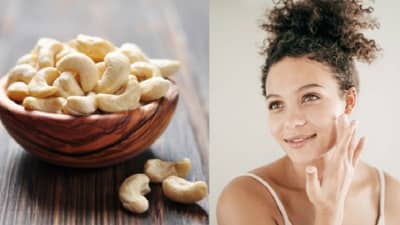 काजूमध्ये प्रथिने आणि व्हिटॅमिन ई भरपूर असते. जे त्वचेची चमक वाढवण्यास मदत करतात. त्यात असलेले अँटी-ऑक्सिडंट चेहऱ्यावरील सुरकुत्या कमी करण्यास मदत करते. याशिवाय केसांसाठी देखील काजू फायदेशीर आहे. खरं तर, काजूमध्ये प्रथिने आणि तांबे असते. जे केस जाड आणि मजबूत बनवण्यास मदत करतात. तसेच केस अकाली पांढरे होण्यास प्रतिबंध करते.