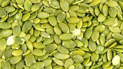 भोपळा बिया :- भोपळ्याच्या बिया आरोग्यासाठीही खूप फायदेशीर असतात. भापळ्याच्या बियांमध्ये अँटिऑक्सिडंट्स, हेल्दी फॅट्स आणि मिनरल्स असतात. भोपळ्याच्या बियांचे सेवन केल्यामुळे तुमच्या शरीरातील पोषण तुमच्या स्नायूंपर्यंत पोहोचण्यास मदत होते. भापळ्याच्या बियांमध्ये भरपूर प्रमाणात व्हिटॅमिन ई, ओमेगा-३ फॅटी अॅसिड आणि अँटीऑक्सिडंट्स तुमच्या त्वचेला मॉइश्चरायझ करतात आणि चेहरा चमकदार होण्यास मदत होते.