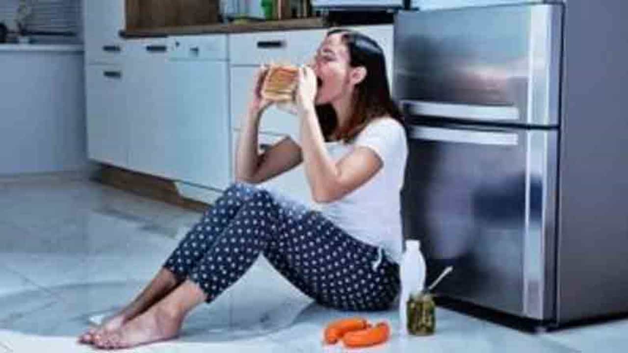 (Good Food Habits sit on the floor while eating any thing)