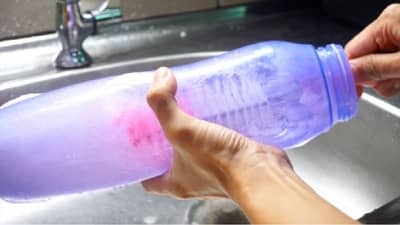 पाण्याची बाटली स्वच्छ करण्यासाठी लिंबू, मीठ आणि बर्फाचा वापर करणे हा देखील एक चांगला पर्याय असू शकतो. यासाठी पाण्याच्या बाटलीत 1 कप पाणी घाला. नंतर त्या बाटलीत लिंबाचा रस, मीठ आणि बर्फ घाला. या सर्व गोष्टी जोरात हलवाव्यात आणि नंतर बाटली पाण्याने स्वच्छ धुवावी.