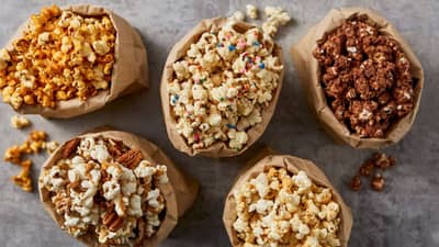 टीप: हे तयार पॉपकॉर्न लगेच खा, काही वेळाने ते मऊ होऊ शकतात.