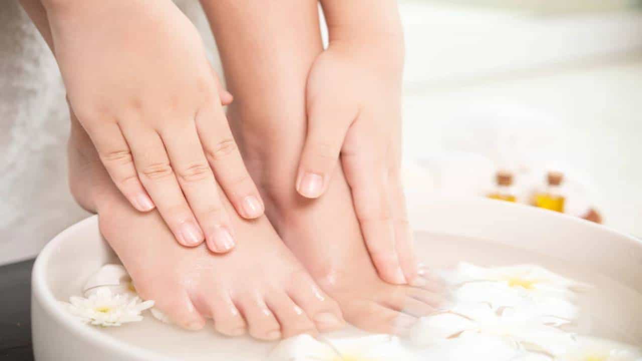 1) पाय 20 मिनिटं गरम पाण्यात भिजवा
