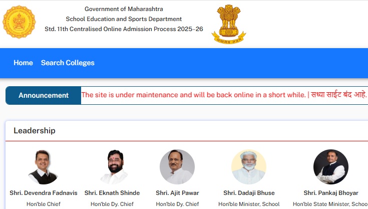 21 मे 2025 पासून महाराष्ट्र FYJC प्रवेश 2025 साठी सुरुवात झाली होती.11वी मध्ये एडिशनसाठी रजिस्ट्रेशन करण्याचे काम सुरु आहे. महाराष्ट्र शालेय शिक्षण आणि क्रीडा विभागा ऑफिशिल वेबसाइटवर जाताच विद्यार्थ्यांना साईट अंडर कंन्ट्रक्शन असा संदेश येत आहे.